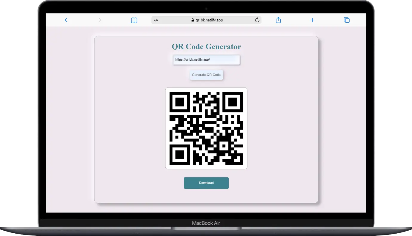 Check out the web app by simply clicking on "QR Generator